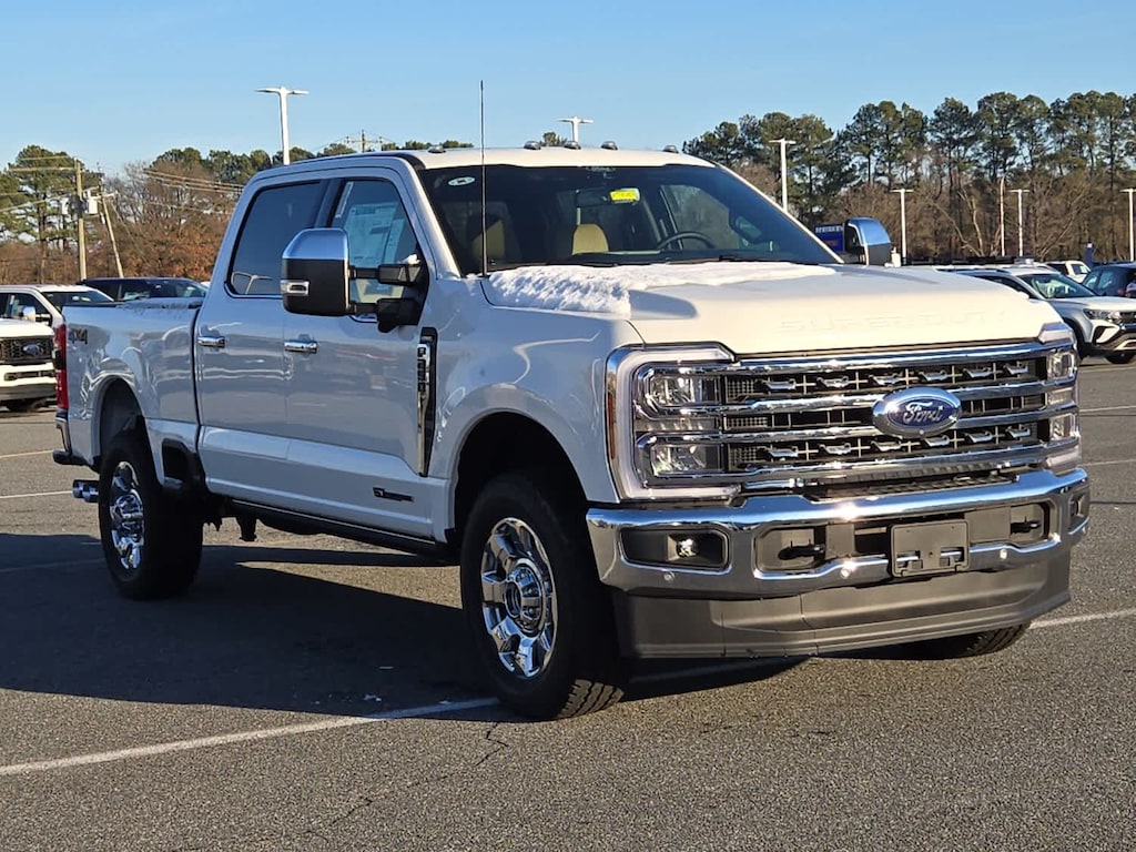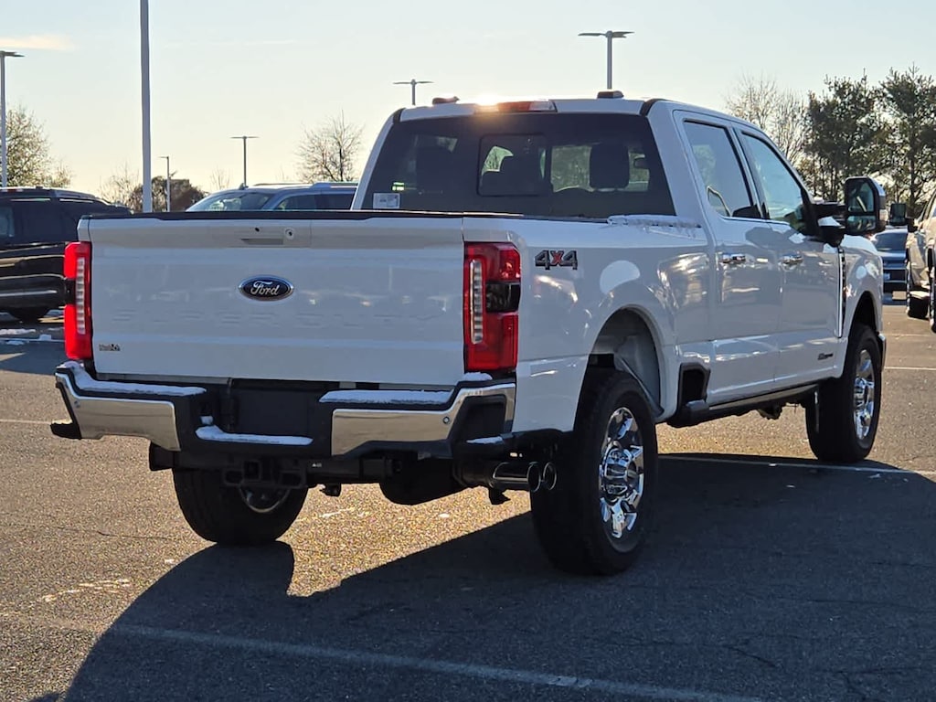 ENGINE: 6.7L 4V OHV POWER STROKE V8 TURBO DIESEL B20 manual push-button engine-exhaust braking, Operator Commanded Regeneration (OCR) and intelligent oil-life monitor, 250 Amp Alternator, 34 Gallon Fuel Tank, 3.31 Axle Ratio, Dual AGM 68 AH Battery, LARIAT ULTIMATE PACKAGE Pro Trailer Hitch Assist, Ford Co-Pilot 360 Assist 2.0, 360-degree camera, rear view camera and reverse brake assist, Pre-Collision Assist, Automatic Emergency Braking (AEB), pedestrian detection, forward collision warning, dynamic brake support and intersection assist, Post-Collision Braking, Lane-Keeping System, lane-keeping alert, lane-keeping aid and driver alert, Front & Rear Parking Sensors, Automatic High Beam, Adaptive Cruise Control w/Stop-and-Go, lane centering and predictive speed assist, 4-Way Adjustable Headrests, Power-Sliding Rear-Window w/Defrost, Tailgate Step & Handle, Head-Up Display, Power-Deployable Running Boards, Pro Trailer Backup Assist, trailer reverse guidance, Radio: B&O Unleashed Sound System by Bang & Olufsen, HD Radio w/14 speakers, TWIN PANEL POWER MOONROOF map lights and moonroof switches, CHROME PACKAGE Unique Chrome Mirror Caps, Tires: LT275/65Rx20E BSW Automatic Transmission, Spare may not be the same as road tire, Wheels: 20 Chrome PVD Aluminum, Chrome Door Handles, 6 Angular Bright Anodized Step Bars, Chrome Exhaust Tip, TRANSMISSION: TORQSHIFT 10-SPEED AUTOMATIC SelectShift and selectable drive modes: normal, eco, slippery roads, tow/haul and off-road.