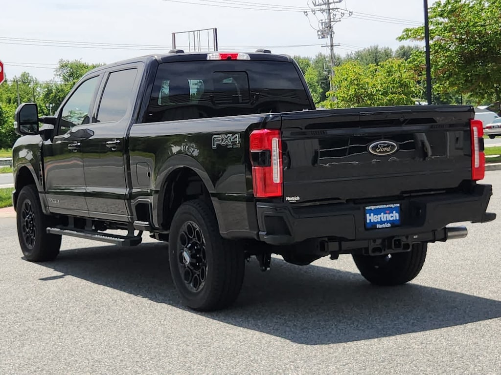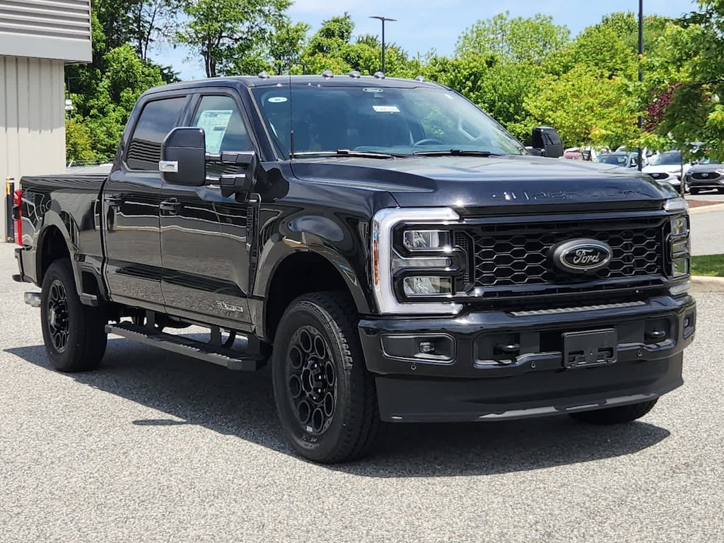 ENGINE: 6.7L 4V OHV POWER STROKE V8 TURBO DIESEL B20 manual push-button engine-exhaust braking and Operator Commanded Regeneration (OCR), 250 Amp Alternator, 34 Gallon Fuel Tank, 3.31 Axle Ratio, Dual AGM 68 AH Battery, LARIAT ULTIMATE PACKAGE Pro Trailer Hitch Assist, Ford Co-Pilot 360 Assist 2.0, 360-degree camera, rear view camera and reverse brake assist, Pre-Collision Assist, Automatic Emergency Braking (AEB), pedestrian detection, forward collision warning, dynamic brake support and intersection assist, Post-Collision Braking, Lane-Keeping System, lane-keeping alert, lane-keeping aid and driver alert, Front & Rear Parking Sensors, Automatic High Beam, Adaptive Cruise Control w/Stop-and-Go, lane centering and predictive speed assist, 4-Way Adjustable Headrests, Power-Sliding Rear-Window w/Defrost, Tailgate Step & Handle, Head-Up Display, Power-Deployable Running Boards, Pro Trailer Backup Assist, trailer reverse guidance, Radio: B&O Unleashed Sound System by Bang & Olufsen, HD Radio w/14 speakers, BLACK APPEARANCE PACKAGE front and rear black Ford ovals, box side decal (4x4, FX4 or Tremor) and ebony black fender vent surround dark fender badge, Rear Wheel Well Liners (Pre-Installed), Black Painted Front Grille Surround, Ebony Black Painted Mirror Caps, Tough Bed Spray-In Bedliner, tailgate-guard, black box bed tie-down hooks and black bed attachment bolts, Body Color Front & Rear Bumpers, Wheels: 20 Machined & Ebony Black High Gloss, Black premium painted aluminum, gloss black hub cover/center ornament, Tires: LT275/65Rx20E BSW Automatic Transmission, Spare may not be the same as road tire, 6 Ebony Black Angular Running Boards, TWIN PANEL POWER MOONROOF map lights and moonroof switches, ELECTRONIC-LOCKING W/3.31 AXLE RATIO, TRANSMISSION: TORQSHIFT 10-SPEED AUTOMATIC SelectShift and selectable drive modes: normal, eco, slippery roads, tow/haul and off-road.